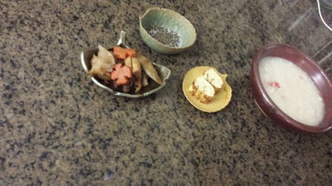 몸이 허해서 삼계탕 뱃속에 찹살을 넣고 요리용 나무로 엉덩이를 먹아주고 먼져 인삼을 2시간 삶은물에 대추 마늘 등등 한약제를 넣어서 고았어요 마늘이 넘넘 달콤했어유 남은건 닭죽으로 흡입