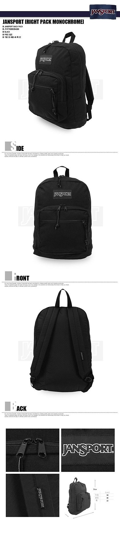 잔스포츠 모노크롬 블랙 어떤가요