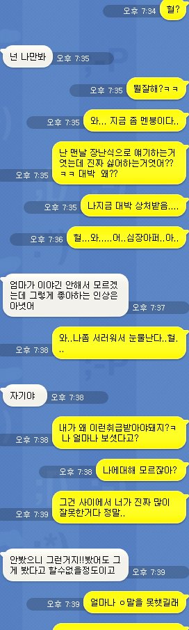 속이다 후련하네.. 지금근데 뭔가 하고싶은말은 많은데 뭐라해야될찌모르겟네 멍해져서...