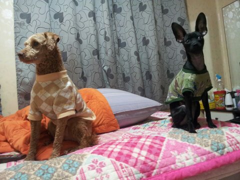 언니 일가면서 마중겸 산책가다 동물병원에서 사준니트옷~(근데 너무얆다