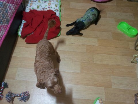 저방석 쓰지도 않으면서 질투나 요시 방석에서 자려는 두봉과 함께 굿잠~![]()