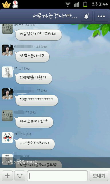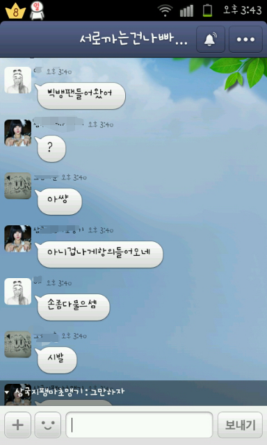 저 ㅅㅂ년들 중 한명이 빅뱅팬 들어왔어 이러니까 갑자기 다들 막 욕하는거임ㅋㅋㅋ