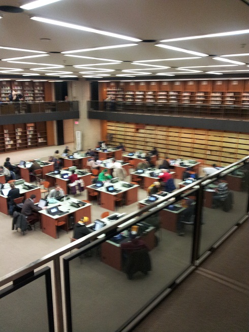 보시는 바와같이 도서관 앞의 광경이며, 사진에 보이는 것보다 훨씬 크지만, 사진을 좀 더 넓게 찍지못해 아쉬움이 따릅니다... 여기는 아침9시에 문을 오픈하고 저녁9시에 문을 닫습니다. 앞에 거의 지하철이 위치해 있어 교통편이 굉장히 좋은편이며, 안에는 책들뿐만아니라 거의 대학교 도서관을 방불케 하는 규모의 도서관으로 자리잡혀 있습니다.