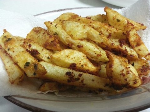 방법은 밀가루,카레가루 위생봉투 넣고 감자넣고 흔들어서 튀기면