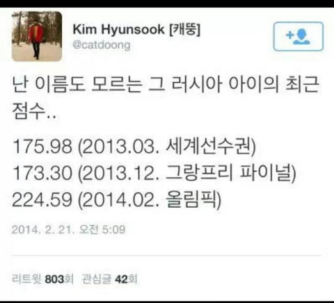 ㅋㅋㅋ이것보다더많지만난별그대를보러가야하기때문에ㅠㅠㅠㅠㅠㅠ미국.영국.캐나다.프랑스등등다른나라해설진들도이해를할수가없다고함어떻게똑같이넘어졌는데자기나라인애는십점을더주냐고ㅋㅋ그리고김연아와러시아아가는가산점이매우차이났고..그결과기술점수가김연아보다높게나옴ㅋㅋㅋㅋㅋㅋ와너무어이없다~~니네다음에평창와서두고보자ㅎㅎ