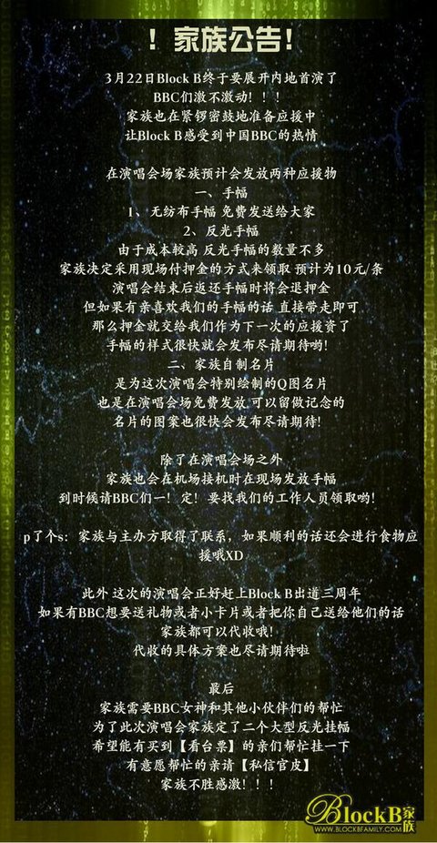 【家族公告】322上海演唱会家族事项:让我们一起给Block B最酷的应援吧!!!Do U Wanna B? Block B!BBC