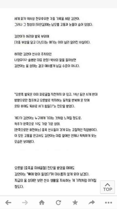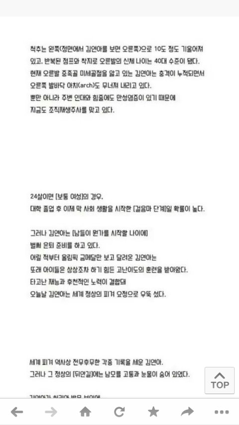 일반인이면 서있기도 힘든데 김연아 선수는 이악물고 빙판에 멋진 무대를 보여줬습니다 발목과 허리 부상이 많은데도 이번 올림픽때 감동을 줬죠 한창 꾸미고 놀수있을 나이에 힐도 못신고 운동화만 신어야하고 재대로 걷기가 힘들다네요 우리나라를 위해서 이렇게 빙판에 서줘서 고맙습니다 김연아니까 피겨여왕이 될수있는거고 김연아니까 멋진 감동의 무대를 만들수 있는거예요 그동안 정말 아름다운 무대 보여줘서 고맙습니다 이번 점수에 문제는 많았지만 정말 멋있었습니다 평창때 우리나라가 똑같이 점수로 복수해주면 좋겠네요 김연아 선수 정말 고마워요