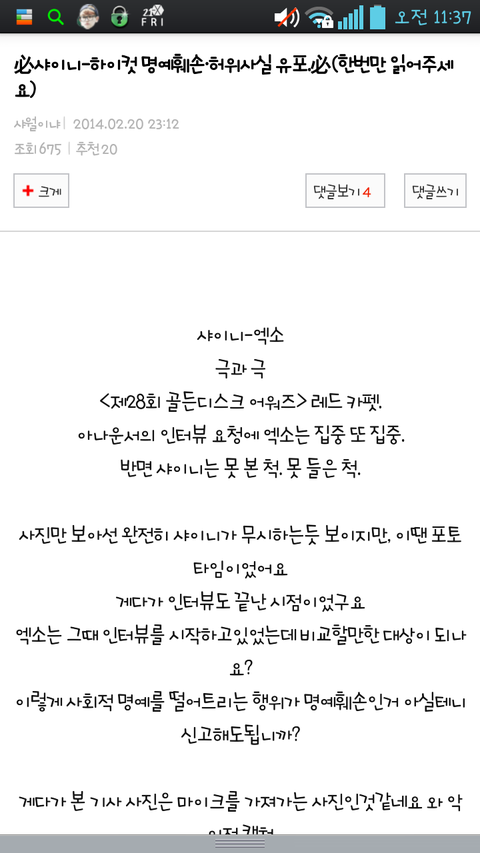 톡선 1위를달리며 아주 미친듯이,가루가되도록 까였겠지?