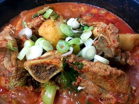 핏물빼고 푹 끓여 우거지는 없어서 대신 생배추넣고 끓인 감자탕..