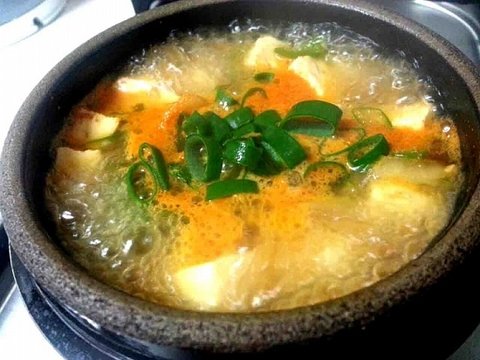 국거리,찌개거리 없어서 냉장고에 조금 남은 두부넣고 양파만 넣고 끓인..