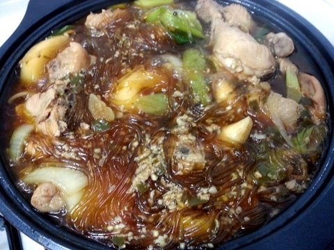 당면 좀 넣고 양파 파 감자넣고 바글바글