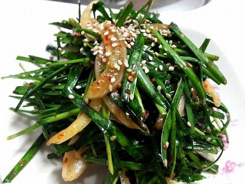 보쌈친구 부추무침 양파 좀 썰어넣고