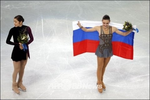쇼트에서 조그마한 점수차로 1위에 올라선 김연아선수