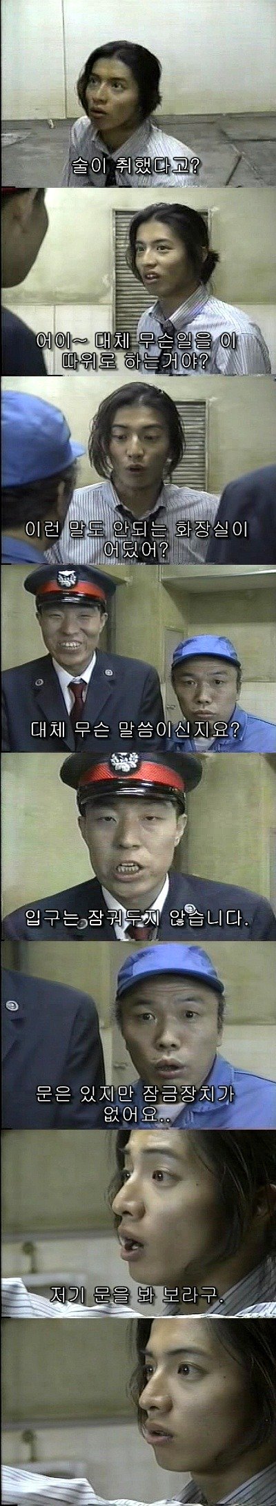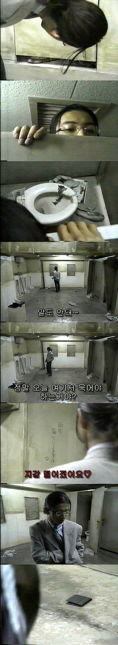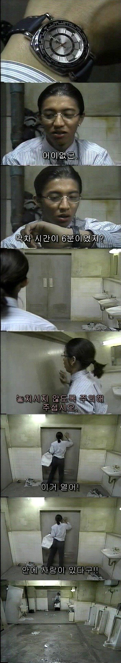 결국 막차를 놓쳐버리고 화장실안에 갇히기까지 한 남자....