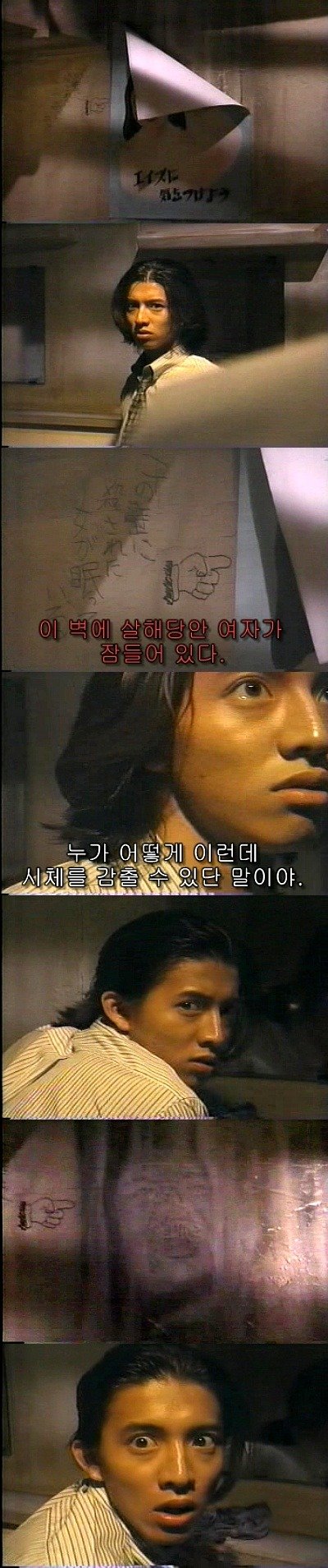 포스터가 붙어있는벽에 여자 시체가 있다는