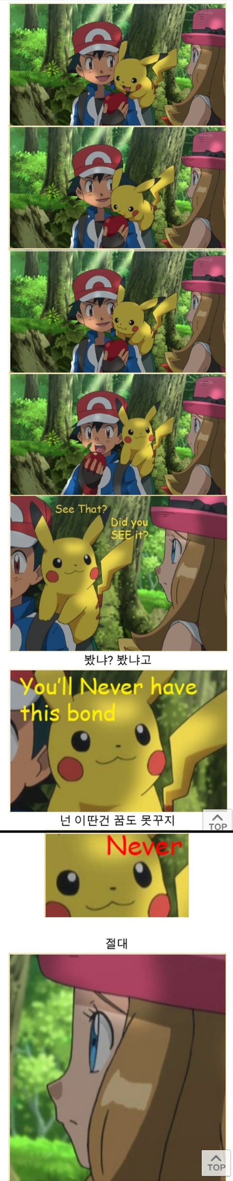 이게 뭐냐면요. 저 여자애가 지우의 소꿉친구이고 지우를 좋아하는데 지우는 고자죠. 예. 그래서 피카츄가 여자애를 농락하는겁니다.