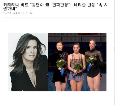 전직 피겨선수였던 카타리나 비트도 역시 편파판정이라고 분개하고 있습니다.