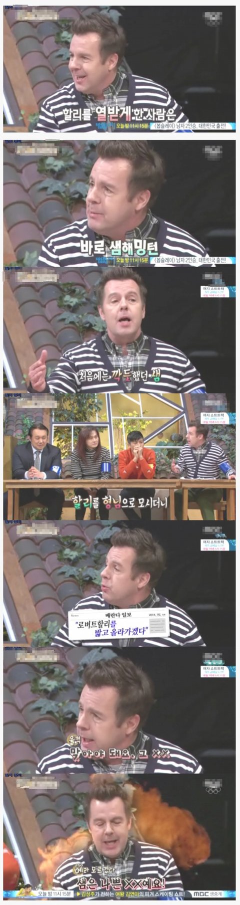 김성주가 빠른이런걸로 서경석이 형으로 불러라고 한얘기를 하며 친구가 되고싶다는 얘기를 하고있었는데 할리아자씨보고 할리씨는 이런걸 어떻게 생각하세요 하니까 완전나쁜새끼네예~ ㅋㅋㅋㅋㅋㅋㅋㅋㅋㅋㅋ 또아들이 유학가서 자기통장돈을 몰래 다썼다는 얘기를하면서 그미친놈이돈을다뺏다니까예 완전도둑놈이지예