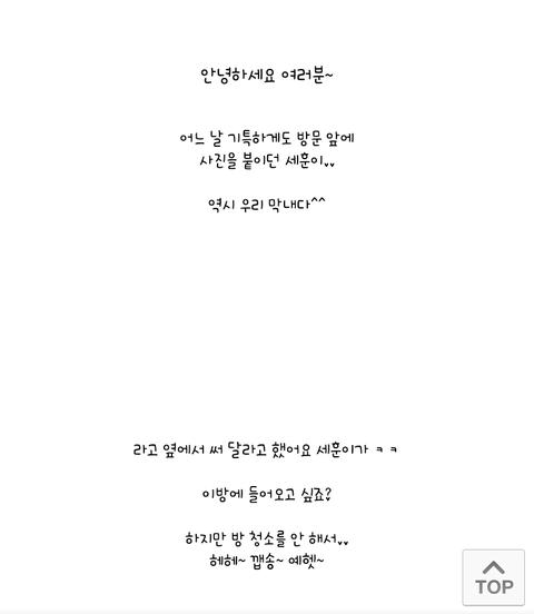 엑소 수호가 공홈에 쓴 따끈따끈한 글