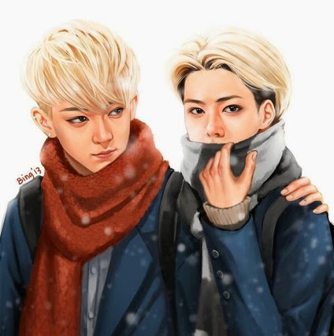 카이랑 타오랑 크리스 형아랑 같이 그린 그림인데 너무 귀엽고 잘그려서 가져왔어!