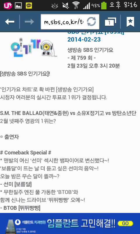 인기가요 1위후보 방탄소년단!!!!!!!!!