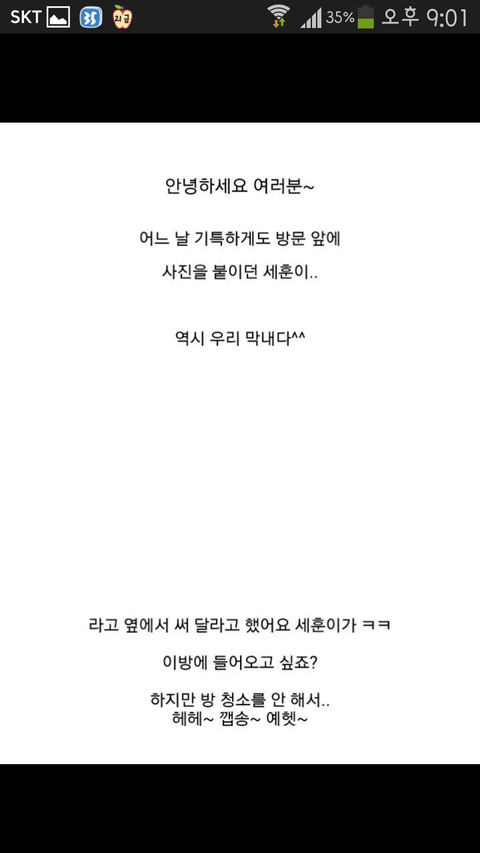 경수톡에서왔어용ㅋㅋ 페북하다가 수호오라버니께서공홈에글을남기셨더라구용ㅋㅋ 재빨리가져왔슘됴ㅋㅋ