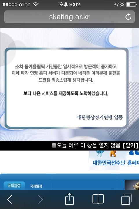 대한빙상연맹홈피 서버다운