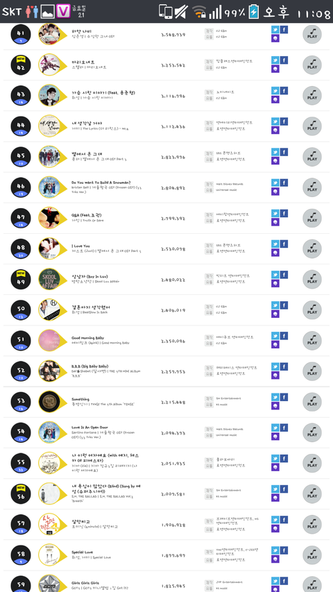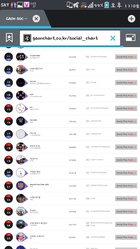 소셜차트 15위엔오 이건뭐필요없지만뿌듯해섴ㅋㅋ