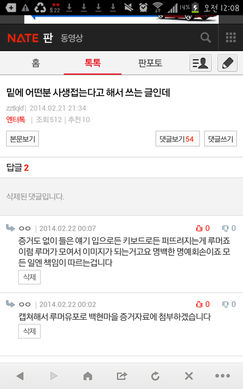 엔터톡 사생글에 성기초딩들이 나대길래 세니랑 큥이 여친맨날바뀐다고 지랄한년 대댓글에 캡쳐신고한다고 하니까 왜 지한테만 그러냐고 지도 들은거라고 징징거리더니 댓삭하고 튐 ㅋㅋㅋㅋㅋㅋㅋㅋㅋㅋㅋㅋㅋㅋ아 존싫ㅋㅋㅋㅋㅋ