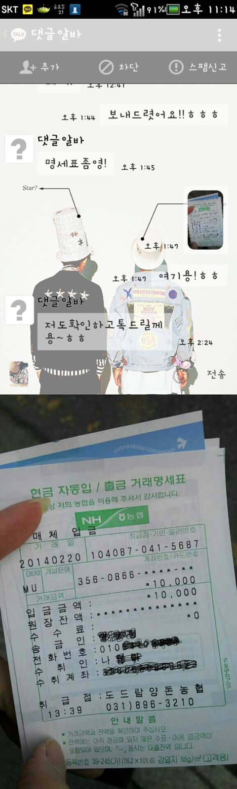 근데 이사람은 말투도 착하시고 친절하시길래 걱정않하 계좌번호 달라그러고 입금 바로했죠.
