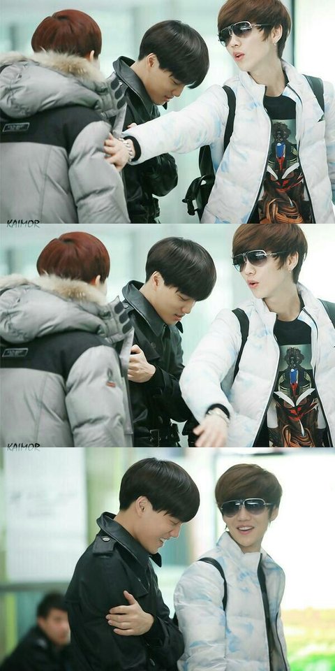 ㅋㅋㅋㅋ 이렇게 세컷 사진만봐도 뭔가 상황을 알 것 같긴한데... 이날 공항후기같은거 없어...? 준면이가 카이 꼬집는(?)거 루한이가 막아주는 상황인 것 같은데 ㅋㅋㅋ 왠지 이 상황전에 종인이가 준면이한테 장난쳤을것 같아 애기 표정좀 봐 ㅋㅋㅋ