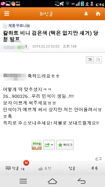 어제 중고나라카페에서 나눔게시판을 보고있는데