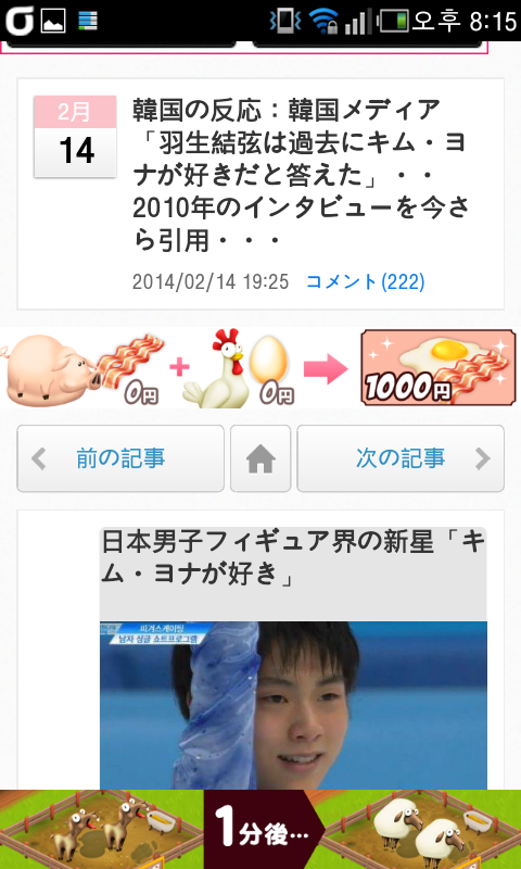 그래서 '하뉴 유즈루 김연아'로 검색을 해 보았습니다. 그러니 웬걸...역으로 일본에서 역으로 우리나라 기사를 번역한 내용만 떠돌아 다니더군요...