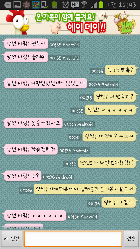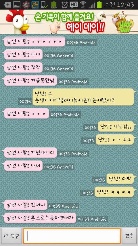 나 심심해서 하다가만나써.. 이거대화한거캡쳐해서 올려달라길래 올리고간답!!