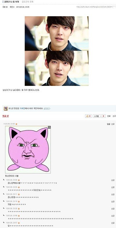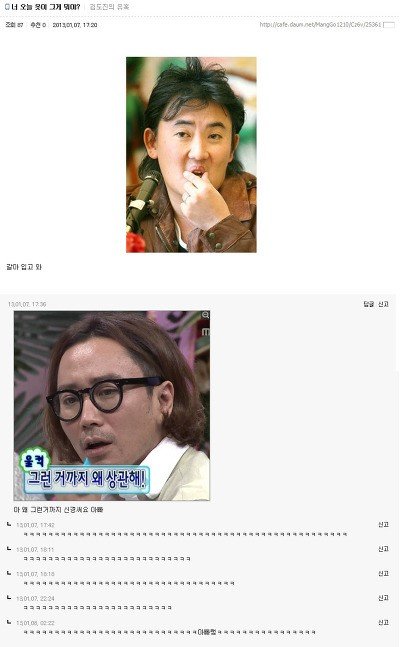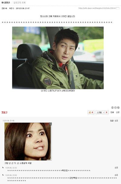 퍼간다고 댓글 남기구요 제가 보기에 웃긴것만 짜집기해서 올린것도 있구요..그럼에도 불구하고 망고카페에 댓글다신 분들에게 하나하나 허락을 받아야 한다고 하시면 저는 할말이 없네요..네이버에 망나니와 고삐 웃긴댓글 캡쳐라고 자동 검색어에도 뜨구요 어쨌든 이 글을 마지막으로 망고카페글은 올리지 않겠습니다