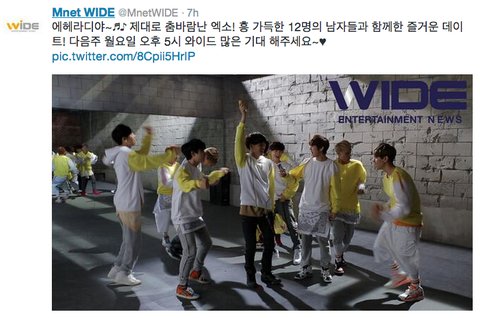 엠넷와이드 트위터에 애들사진 떴는데, 이거 써니텐 광고촬영짤 풀린거에서 입은 옷 맞지? 광고 촬영현장 보여주나봐 떡밥이닷 기대된다~~~~ 종인이 써니텐(맞나?)캔 흔드는거 귀여워~