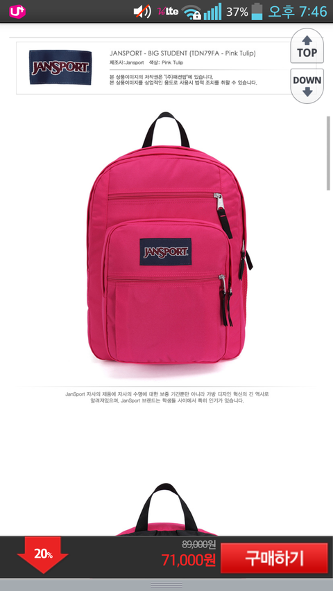 잔스포츠 빅스튜던트 핑크튤립 어때..? 고2인데 살까 사지말까