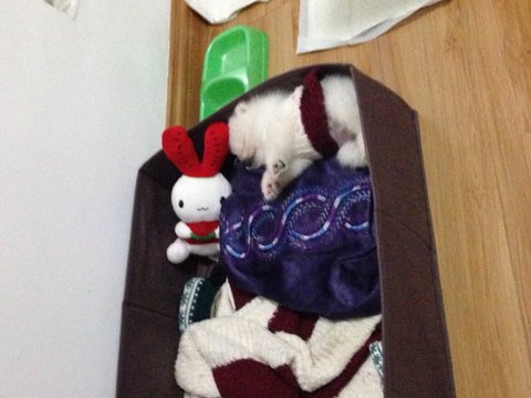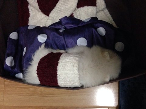 안입던 옷을 송이집에 깔아줬었는데요. 추워하는거 같아 소매부분으로 옷 만들어 줫어요