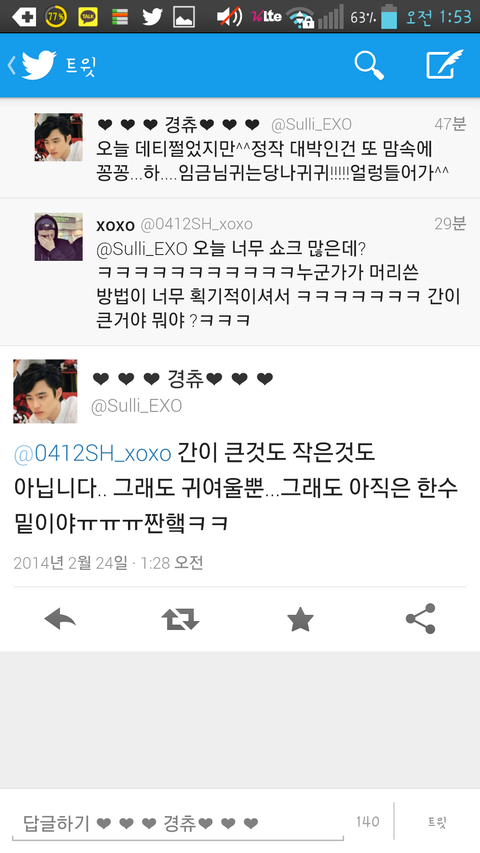 2월 6일 김루한 콜택시는 또 뭔데 미친 ㅠㅠㅠㅠ 그래서 마음에는 드냐니 뭔데ㅠㅠㅠㅠㅠ아짜증나 미친 좀 제대로 입털거아니면 조카 지만 알고있던가 왜지랄ㄹ이야ㅠㅠㅠ