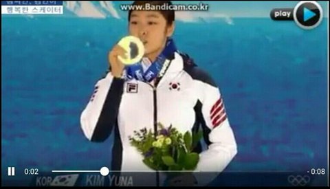 김연아선수가 은메달에 뽀뽀를 하는순간