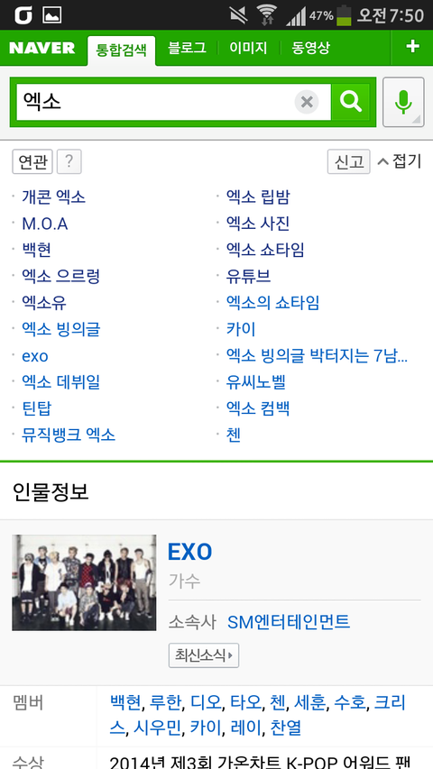 그리고검색어에엑소라고치면연검에m.o.a뜸