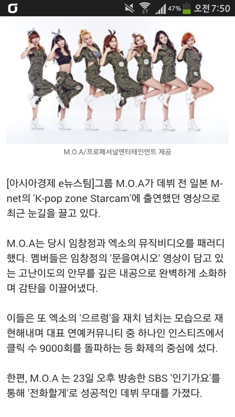 걸그룹m.o.a 엑소 패러디하면서데뷔전부터일본에서인기를끌었음