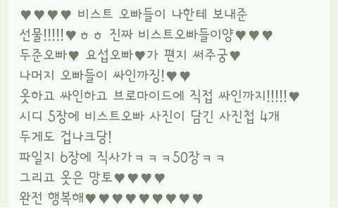 이건 그 소녀팬이 선물을 받고 쓴 글임!