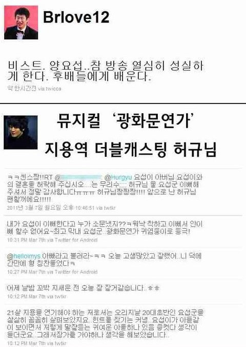 비스트를 아껴주시는 선배님들이 비스트의 칭찬을 여기저기서 많이 해주심!
