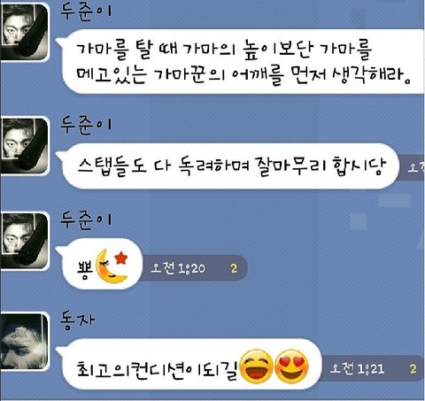 비스트 단독콘서트 전날 단체 카톡방에 윤두준이 저런 말을 했고 양요섭이 sns에 대화내용을 올림. 윤두준은 많은 관심을 받는게 숙쓰럽다며 자만하지 않고 멤버들을 독려하기위해 저런 글을 올렸다고 함ㅠㅠㅠㅠ저 리더다운 듬직함ㅠㅠㅠㅠㅠㅠㅠㅠㅠ우럭우럭ㅠㅠㅠㅠㅠㅠㅠ