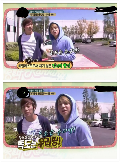 양요섭이 독도는 당연히 한국땅이라며 대답한 적이 있고,