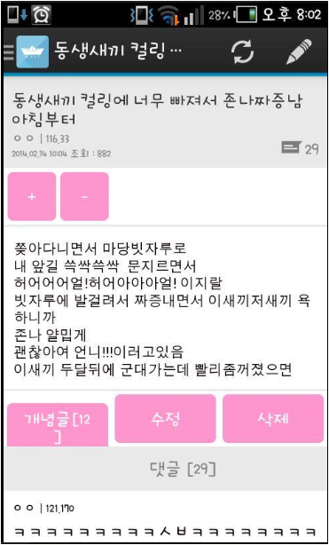 그런데 이런 흔한 뻘글을 굳이 클릭해서 조회수 늘리고 반대 누르고 댓글 달면서 톡선 보내고 북치고 장구치는 거 보니까 판녀들 또 여돌로..