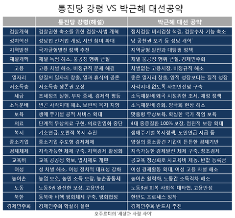 박 대통령이 자신의 대선공약을 그대로 지킨다면 이는 곧 통진당 강령 중 상당부분을 그대로 실행에 옮기는 셈이 된다고 해도 틀린 말이 아닐 것이다.