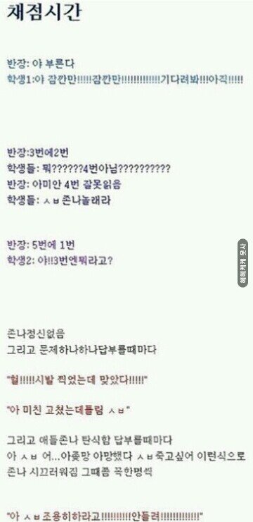 채점다하고 꼭우는애들있는데.. 점수보면80~90점댄데 틀렷다고 우는애들....하진짜솔직히시험지꾸겨서 입에쑤셔넣고싶음