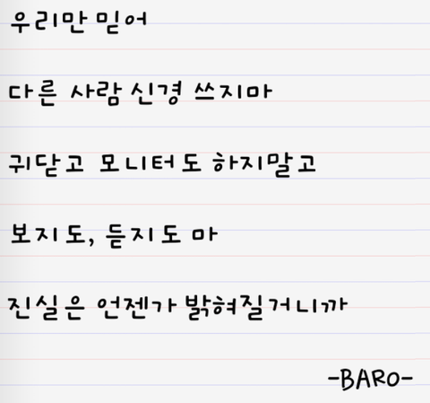 이제라도 점점 진실이 밝혀져서 너무 기쁘고 우리 지금도 앞으로도 더 힘내자 오빠들한테 도움 될 수 있는 그런 팬 되자.